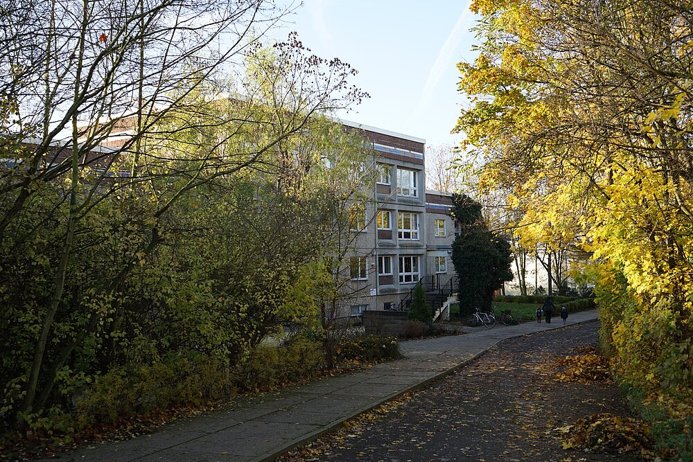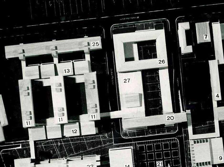 - Bis 1975 sollte die Hochschule für Bauwesen vom Sitz im heutigen Geutebrück-Bau aus gesehen nach Westen wachsen, den Hügel hinunter bis zur Windscheidstraße. Zielzahl Bau-Studierende: 2.500.