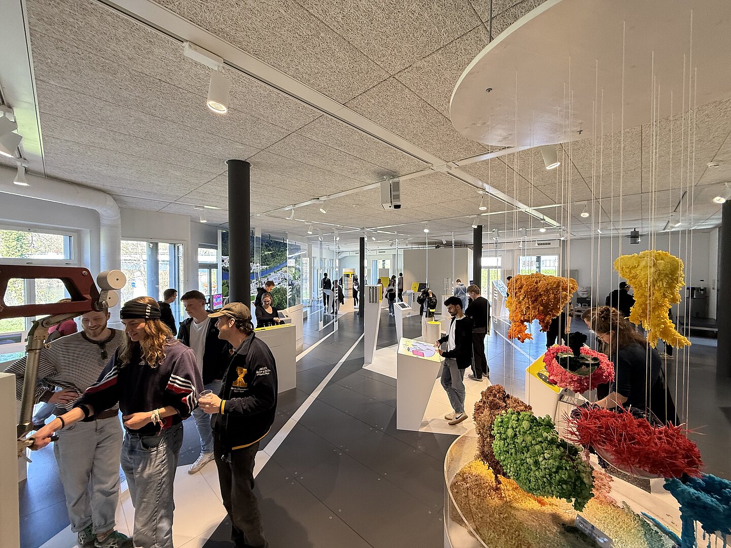Nach einer erholsamen Nacht und einem stärkenden Frühstück ging es zurück über die Grenze direkt zum CERN. Nach der Akkreditierung hatten wir zunächst die Möglichkeit, die Ausstellungen zu besuchen. Obwohl die Zeit knapp bemessen und die Ausstellungsräume gut gefüllt waren, konnten die Studierenden bereits hier spannende Einblicke in die Grundlagenforschung des CERN gewinnen.